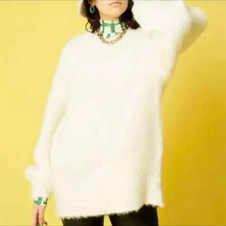 CYAN TOKYO 시안 도쿄 울 모헤어 배색 니트
