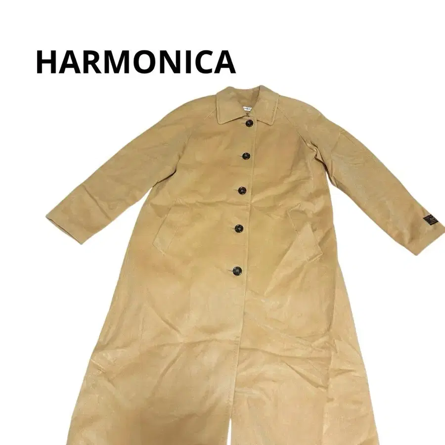 자동 번역되었어요. 원문보기두꺼운 원단의 베이지색 버튼이 달린 롱 코트, 양쪽 사이드 포켓 포함.