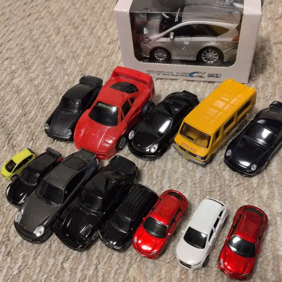 다양한 디자인의 미니카 14대 세트 박스형 차량 포함. - 색상: 빨간색, 블랙, 화이트, 옐로우 컬러, 그린 - 자동차 종류: 미니카 - 수량: 14대 - 특징: 다양한 디자인의 차량 포함 - 부속품: 박스형 차량 (1대) 벤츠 루프 프리우스 알파 집에서 보관했습니다. 약간의 흠집 등이 있지만, 이해하신 후 구매해 주세요. 유패킷 플러스 전용 상자에 넣어 발송합니다. 방문해 주셔서 감사합니다.