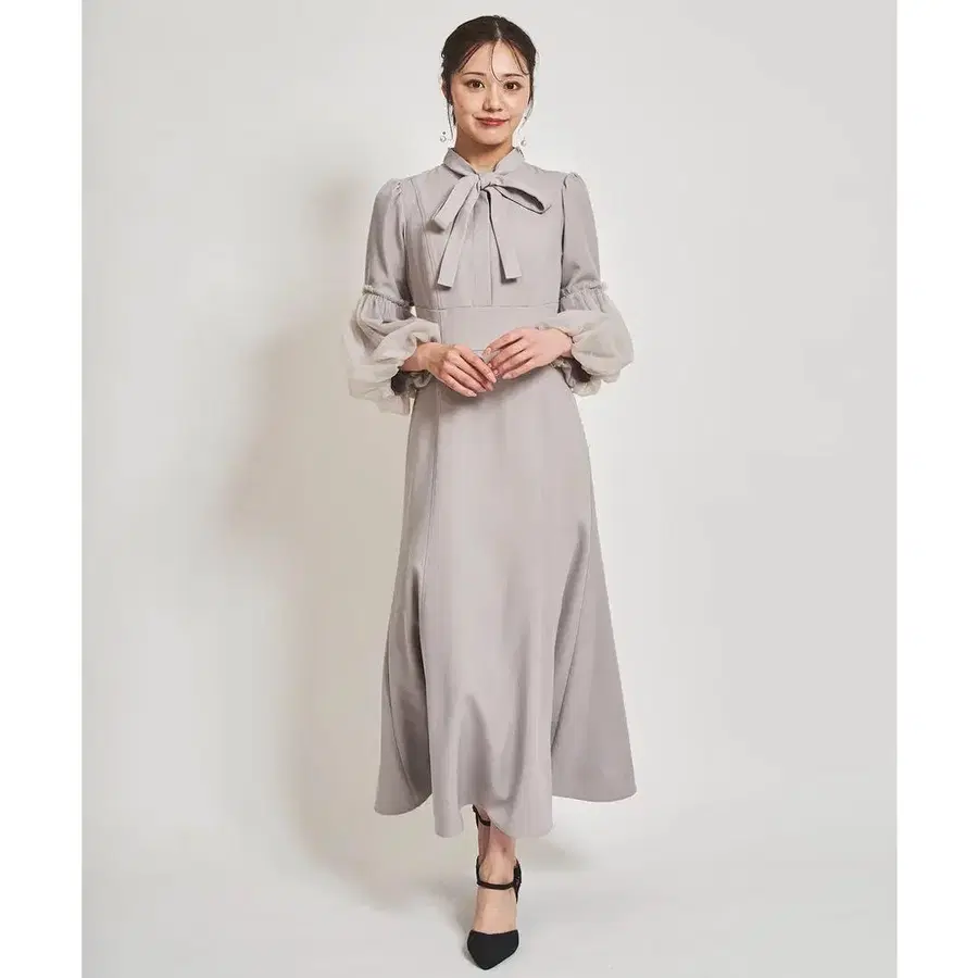 리본이 달린 벌룬 슬리브가 특징인 엘레강트한 미디 기장 원피스. - 색상: 그레이. - 소매 디자인: 벌룬 슬리브 - 옷깃 디자인: 리본 포함 - 기장: 미디 기장 - 스타일: 엘레강트 방문해 주셔서 감사합니다.