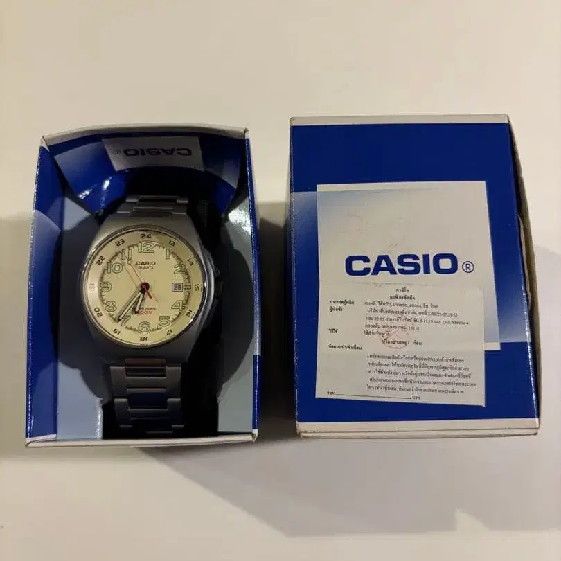 실버 쿼츠 손목시계, 날짜 표시 기능 포함. 오래된 제품이라 작동이 멈춘 상태입니다. - 브랜드: CASIO - 모델: 쿼츠 손목시계 - 방수 기능: 방수 - 색상: 실버/크림 - 특징: 날짜 표시 기능 방문해 주셔서 감사합니다.