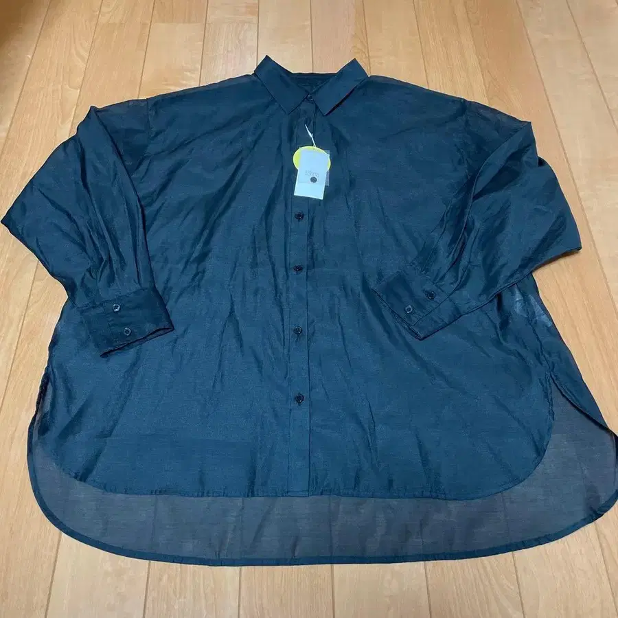 LOWRYS FARM 로리즈팜 블랙 시어 셔츠 사이즈: 2 (긴 길이, 프리 사이즈)