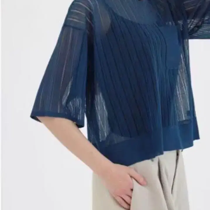 파란색 아크릴 혼방 소재에 리브 디자인이 특징인 반팔 니트 스웨터입니다. - 색상: 블루 - 사이즈: F - 소재: 아크릴 72%, 폴리에스테르 28% 방문해 주셔서 감사합니다.