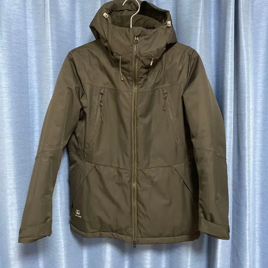 자동 번역되었어요. 원문보기다크 브라운의 후드 부착 자켓, L 사이즈, 지퍼 포켓 부착으로 기능적입니다.