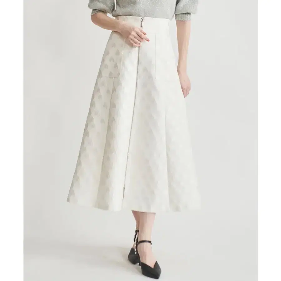 화이트 플레어 스커트 지퍼 프론트 오픈 하트 무늬