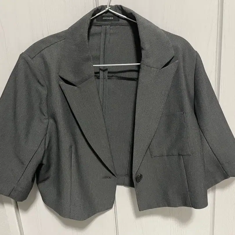 숏 테일러드 자켓(숏 기장)/벨트 턱 와이드 팬츠 그레이