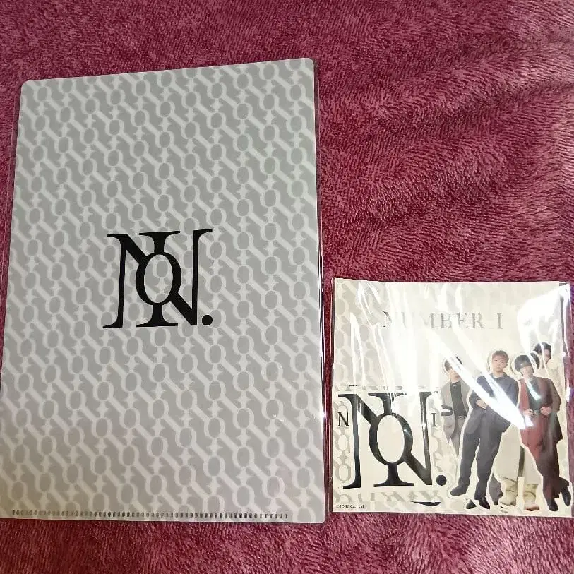 Number_I LIVETOUR 2025 오피셜 굿즈. 로고가 들어간 그레이 색상의 클리어 파일과 아이돌 사진을 담은 소책자 세트.