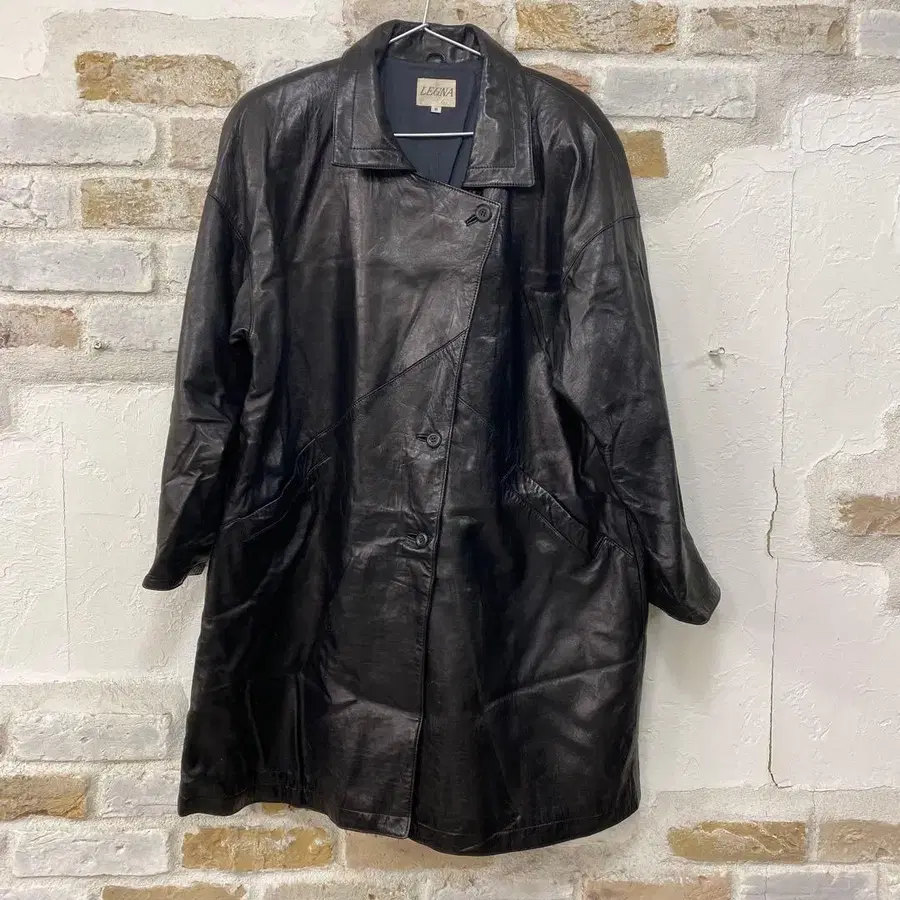 새상품급 빈티지 양가죽 LEONA 변형 블랙 가죽 롱 코트 M