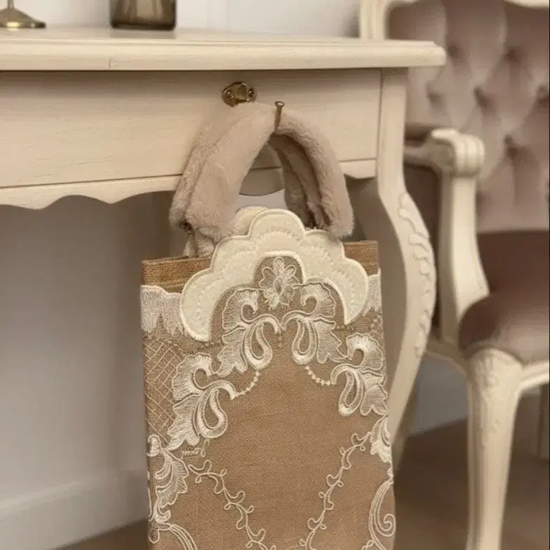 천연 소재인 주트에 고급 레이스를 겹쳐 자수가 아름다운 멋진 백입니다.