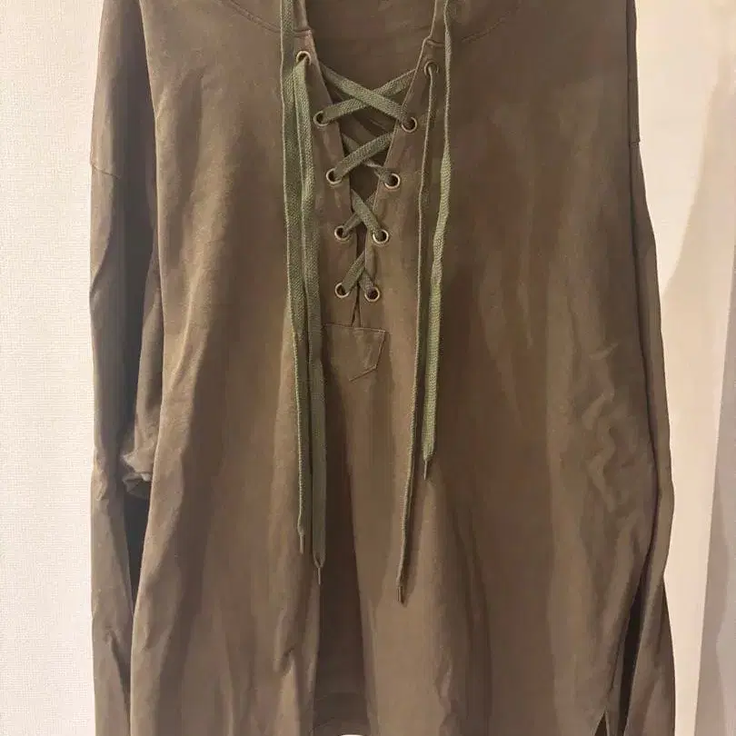 올리브 그린 레이스업 후드 후드티