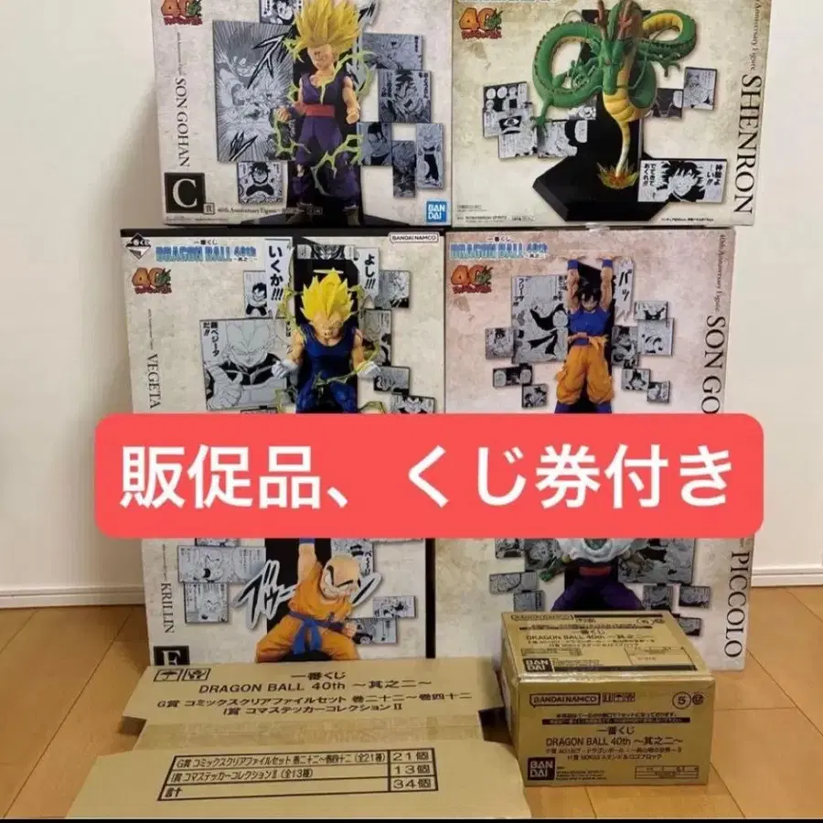 A상 40th Anniversary 피규어 ~손오공~ x 1 B상 40th Anniversary 피규어 ~베지터~ x 1 C상 40th Anniversary 피규어 ~손오반~ x 1 D상 40th Anniversary 피규어 ~피콜로~ x 1 E상 40th Anniversary 피규어 ~크리링~ x 1 F상 ACLLECT -드래곤볼- ~토리야마 아키라의 세계~Ⅱ x 20 G상 코믹스 클리어 파일 세트 권 22 ~ 권 42 x 21 H상 MOKUJI 스탠드 & 로고 블록 x 18 I상 시계 부품 스티커 컬렉션Ⅱ x 13 라스트 원상 40th Anniversary 피규어 ~신룡~ x 1 미개봉 새상품 78점, 컴플리트입니다. 즉시 구매 가능. 판촉물 포함. 복권 포함입니다. +15000엔으로 1 로트 구매도 가능합니다. 그럴 경우 댓글 부탁드립니다.
