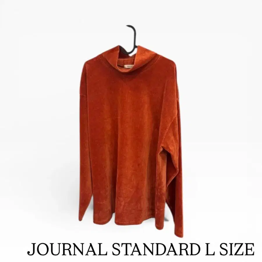 Journal Standard의 오렌지 컬러 코듀로이 소재 하이넥 스웨터입니다. 목의 1/3 정도를 덮는 이미지입니다!