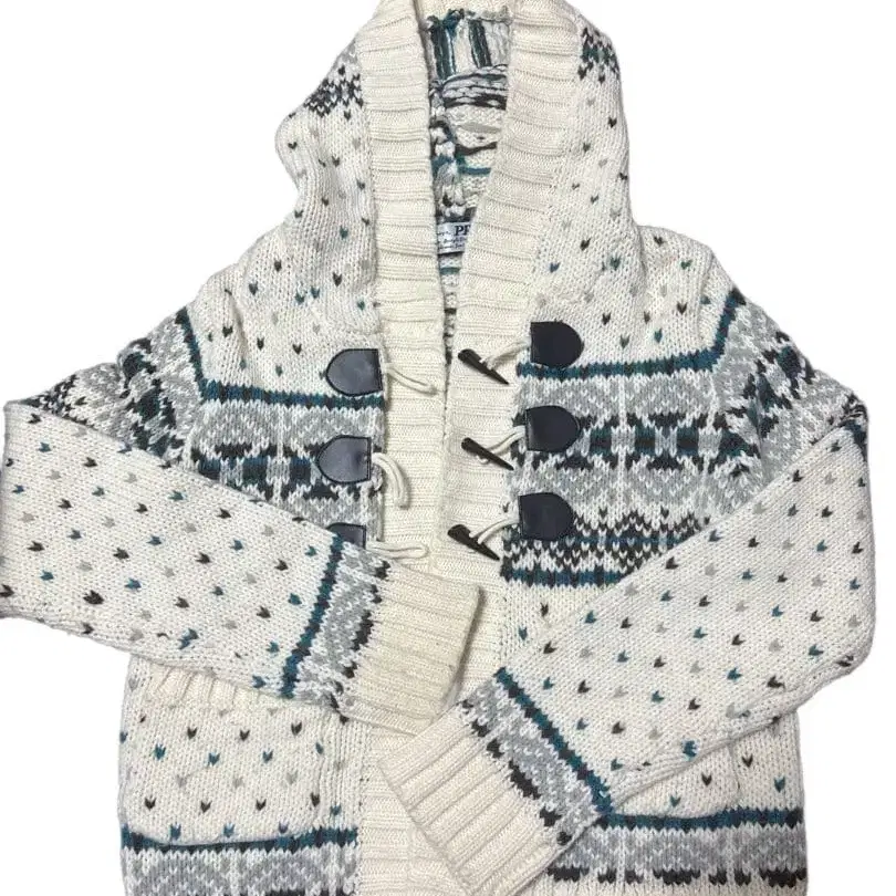 화이트 페어아일 패턴 니트 스웨터, 후드 부착에 토글 버튼 클로징. 사용감이 없는 상태입니다. 한 번 착용한 것뿐입니다. 아동복으로도 사용할 수 있다고 생각합니다. - 색상: 화이트 - 디자인: 페어아일 패턴 - 소재: 니트 - 후드: 후드 부착 - 클로징: 토글 버튼 잘 부탁드립니다.