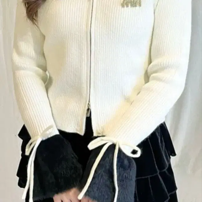 • 화이트 퍼(Fur) 느낌의 쇼트 가디건 니트