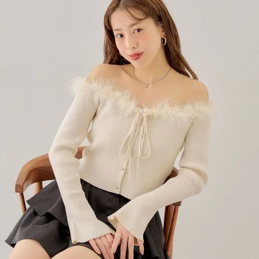 Chico 퍼 오프숄더 디자인 니트