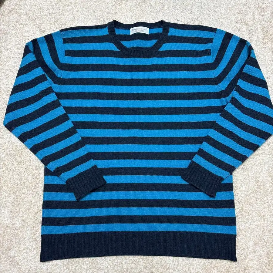 터콰이즈 블루와 네이비 스트라이프 디자인의 100% 캐시미어 스웨터. 몇 년 전 런던에서 약 10만 엔에 구매했습니다. 희귀한 색상과 디자인이므로 이 기회에 꼭 어떠신가요? - 브랜드: Johnstons Cashmere - 소재: 100% 캐시미어 - 색상: 터콰이즈 블루와 네이비 스트라이프 - 사이즈: 어깨 너비 51cm, 기장 67cm, 소매 길이 58cm - 스타일: 크루넥 - 제조국: 스코틀랜드 사이즈 - XL(LL)