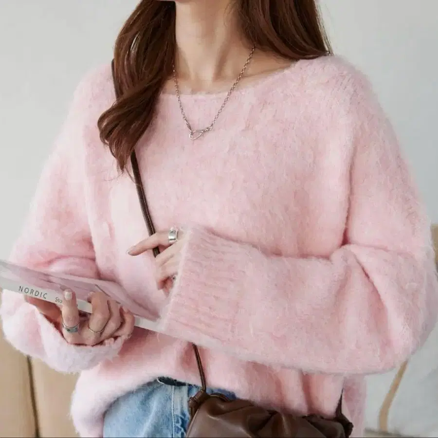 디스코트의 샤기 니트 풀오버 핑크입니다 ♡ 정말 귀여운 색상과 털이 긴 니트로 따뜻합니다.