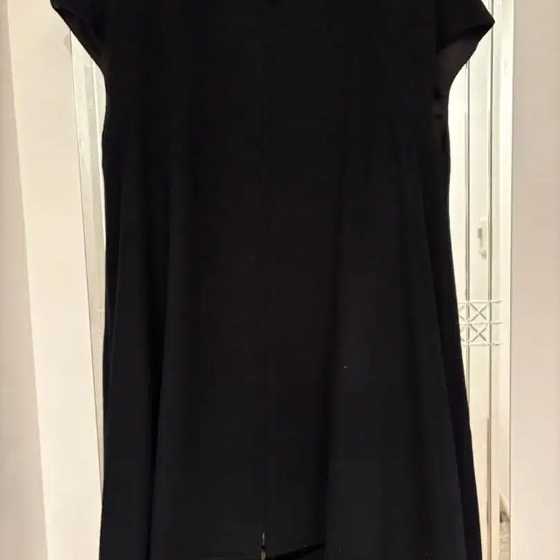 집업 디자인의 블랙 비대칭 베스트. - 색상: 블랙에 가까운 네이비 - 디자인: 집업, 슬리브리스, 비대칭 밑단 사이즈 - 36 오버 사이즈입니다. 두꺼운 원단의 스웨터 위에도 겉옷으로 걸치기 좋습니다. 가슴 너비 - 54cm 앞 옷깃~밑단까지 78cm 뒷면 카라~밑단까지 102cm 택을 제거하고 사용할 예정이었으나, 한 번도 착용하지 않고 옷장에서 보관했습니다. 매우 깨끗한 상품입니다.