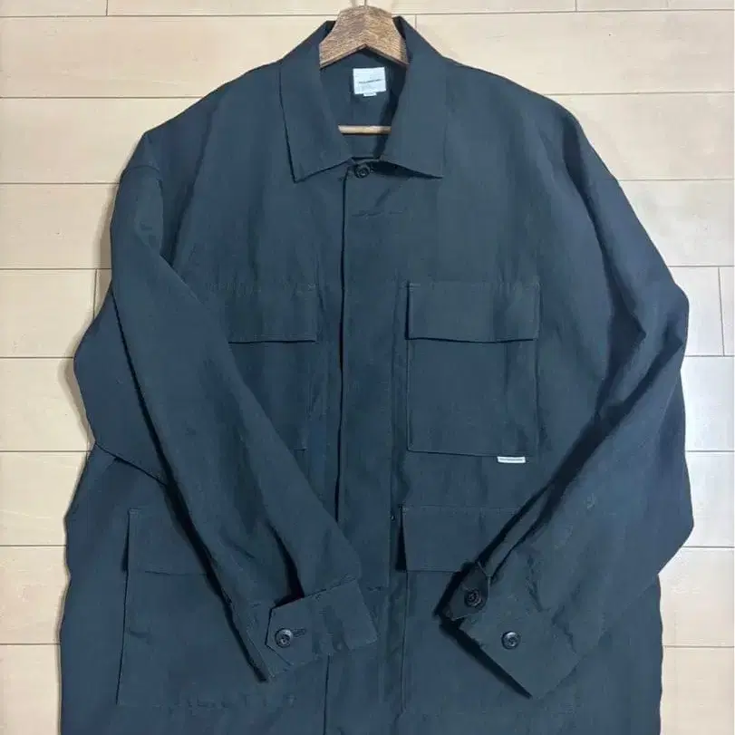 COOTIE PRODUCTIONS POLYESTER CANVAS BDU JACKET 24SS 정가 42,900엔 공식 온라인 사이트에서 구매. 사이즈: M 기장 74cm 가슴 너비 74cm 어깨 너비 65cm 소매 길이 56cm — 제품에 1회 Wash를 더해, 와셔 가공으로 독특한 질감을 살린 폴리에스테르 캔버스 원단을 사용하여 제작된 POLYESTER CANVAS BDU JACKET입니다. 중공사를 사용했기 때문에 외관상 두께감에 비해 매우 가볍고 유연한 것이 특징입니다. 여유로운 와이드 실루엣으로 완성되었습니다. —