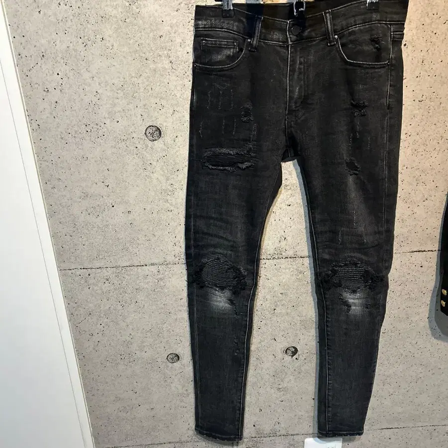 • 데미지 가공 스키니 데님 팬츠 블랙