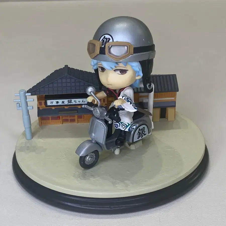 스쿠터를 탄 긴토키가 가부키초의 거리 풍경을 배경으로 늠름하게 달리는 모습을 재현한 배경 받침대 포함 피규어
