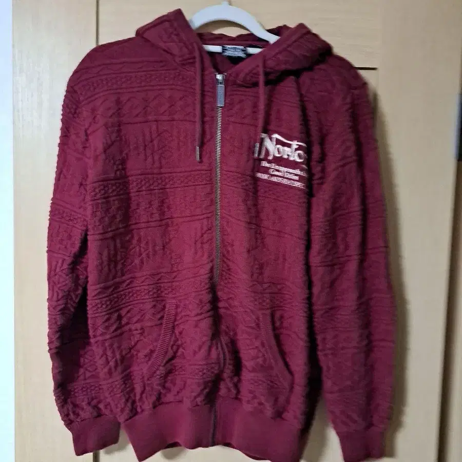 와인 레드 색상의 집업 후드티, 텍스처 원단과 자수 로고가 특징입니다. - 브랜드: Norton - 사이즈: X-LARGE - 색상: 와인 레드 - 디자인: 집업, 후드 부착 - 특징: 텍스처가 있는 원단, 자수 로고 방문해 주셔서 감사합니다.