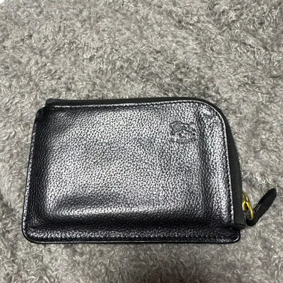 일비종떼 L자 지퍼 미니 지갑 가죽 로고 각인 블랙
