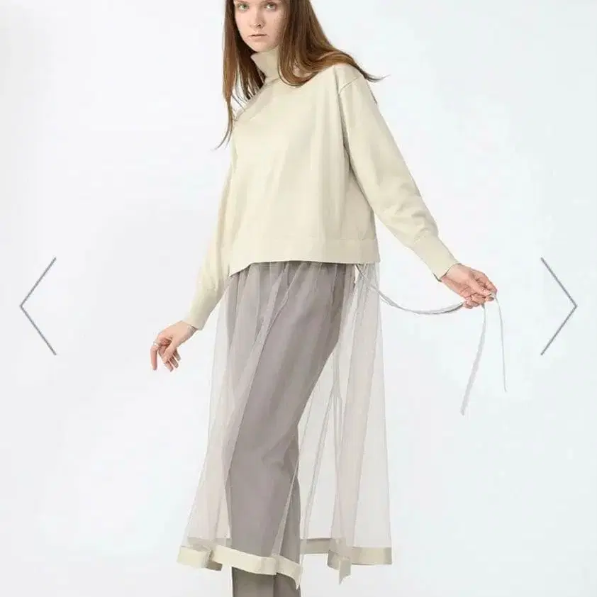 LASUD의 시어 스커트가 도킹된 터틀 니트. 라쿠텐 패션에서 17000엔.