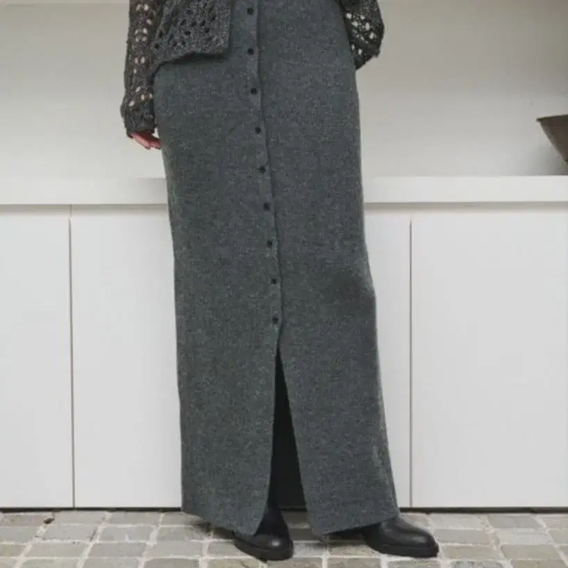 그레이 니트 롱 스커트 큰 키