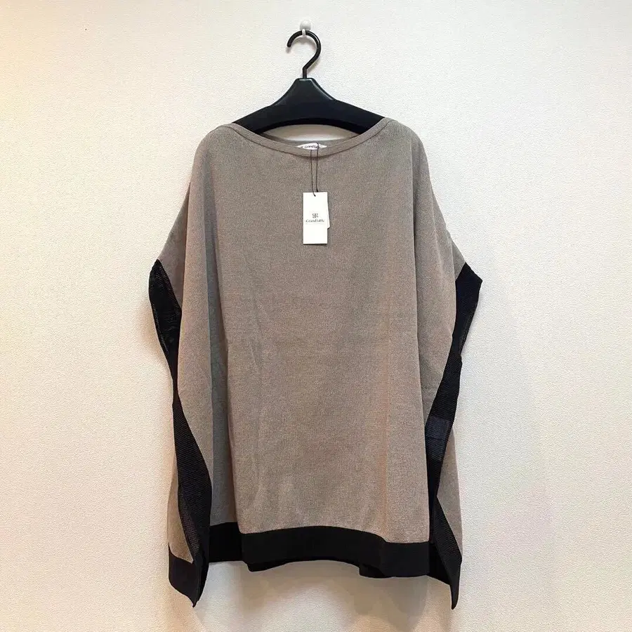 야마다야 그랜터블 니트 9호 베이지 x 블랙 미사용 새상품. 얇은 소재의 니트입니다. YAMADAYA 모카 베스트 변형 니트 풀오버 니트 판초 케이프 코트 사이즈 - M
