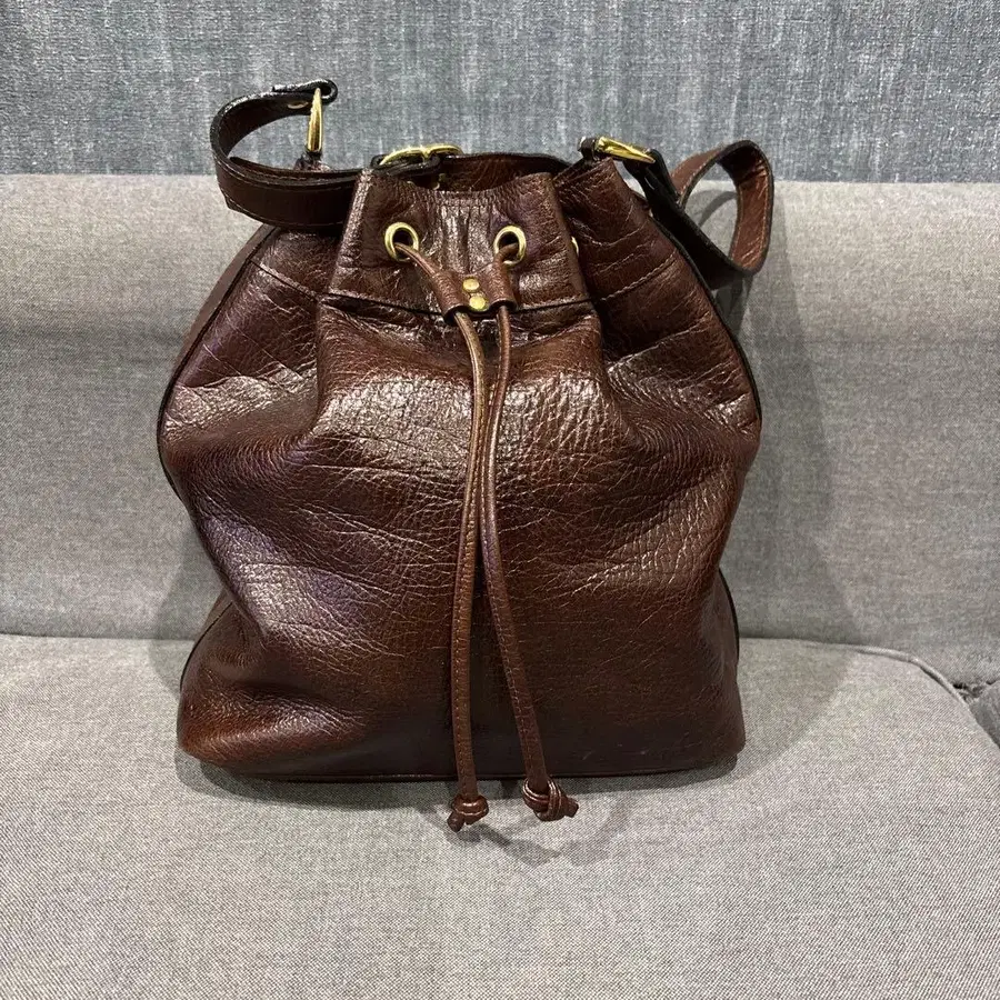 다크 브라운 가죽 복조리형 숄더백