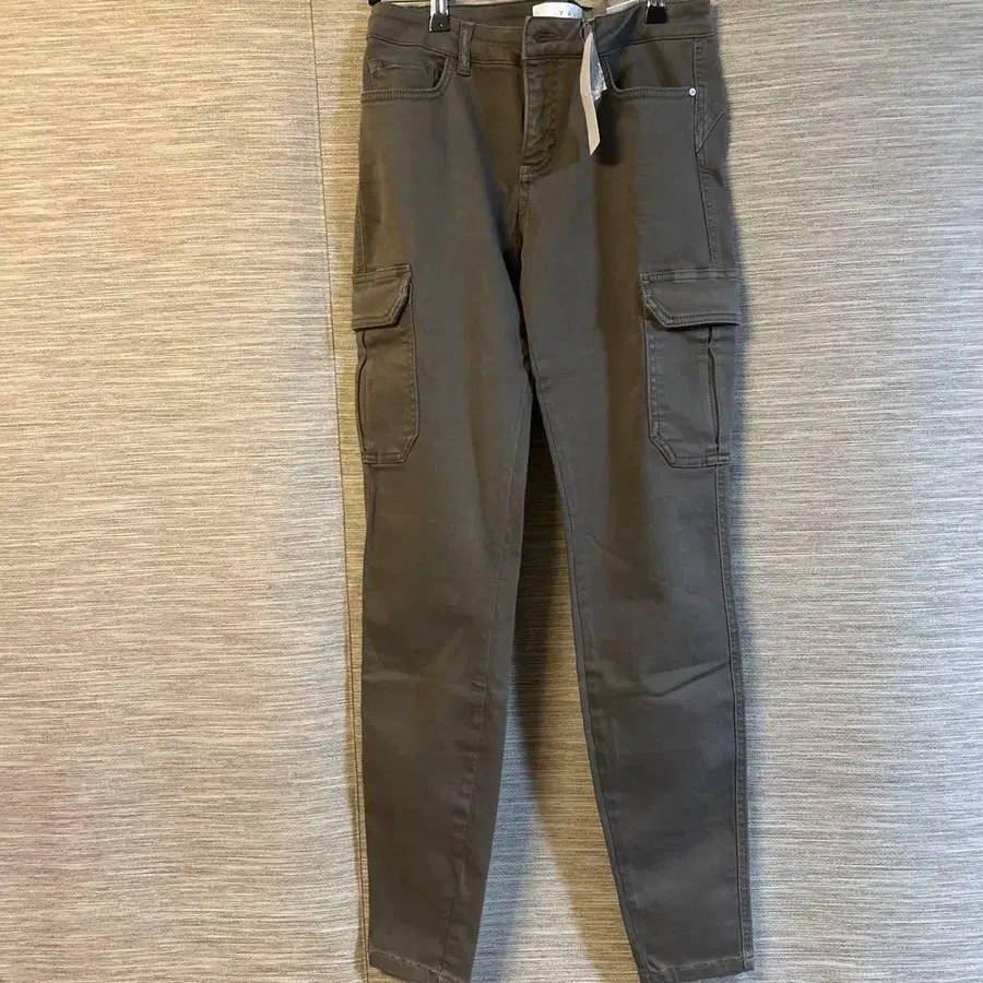 올리브 그린 카고 팬츠, 사이드 포켓이 있어 기능적입니다.