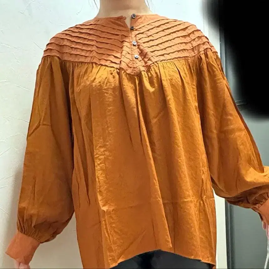 방문해 주셔서 감사합니다. 그레디 브릴리언트 블라우스 셔츠입니다. 오렌지 컬러이며, 리브가 있는 옷깃과 벌룬 슬리브가 특징인 오렌지색 긴팔 셔츠입니다. 택 포함 미사용 새상품입니다. 잘 부탁드립니다!