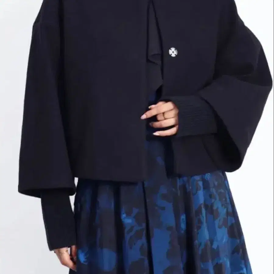 라지엠 숏 기장 보아 아우터 코트 테일러드 드롭 숄더 블랙