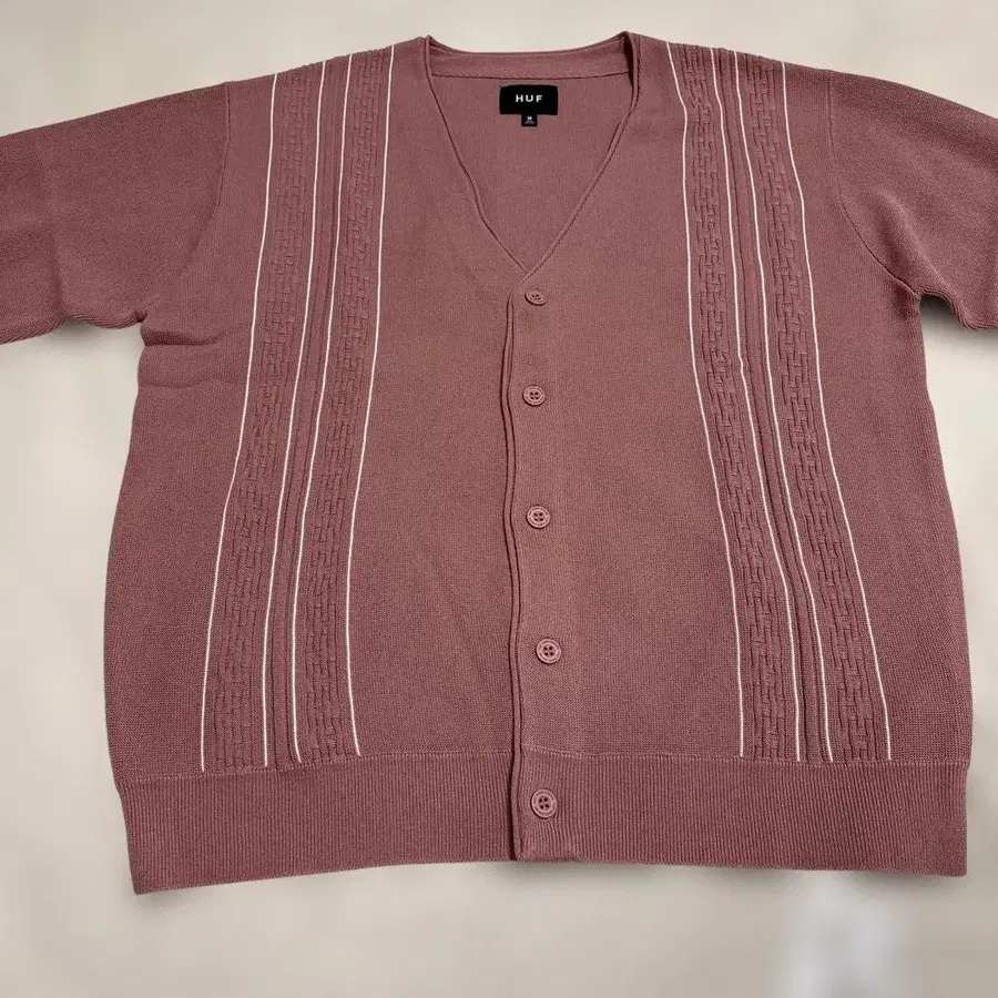 HUF의 핑크 니트 가디건입니다. 1번도 착용하지 않았습니다. 사이즈 M