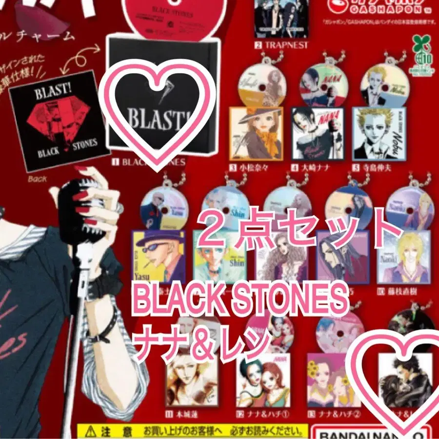 NANA CD풍 아크릴 참 BANDAI 반다이 가챠가챠 ♡ BLACK STONES ♡ 나나 & 렌 컴프 목적으로 돌렸다가 중복되어 2개 세트로 양도합니다 ·͜· ❤︎