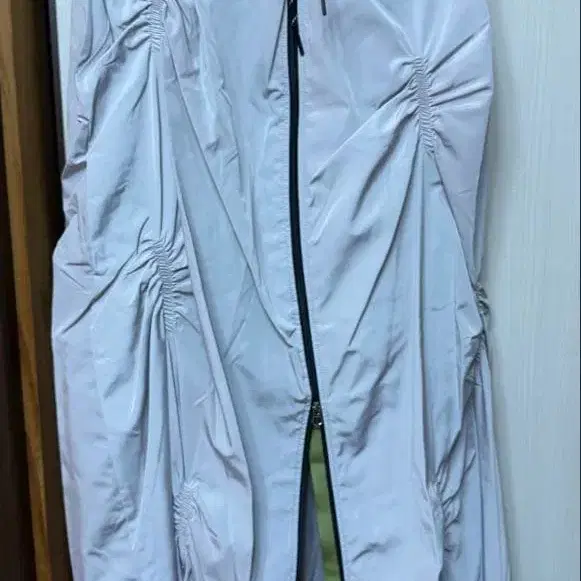 야마다야 계열 브랜드 Eimee Law 집업 롱 기장 스커트 F Eimee Law 에이미 로우 색상 라이트 그레이 사이즈 프리 흔치 않은 디자인성의 높은 스커트입니다. 앞면은 위쪽에서도 아래쪽에서도 지퍼로 개폐할 수 있으며, 아래쪽은 원하는 위치에서 열 수 있습니다. 열면 녹색 라인이 나와 예쁩니다. 나일론 원단으로 보송보송해서 먼지 등이 붙지 않아 관리가 편할 것 같습니다. 양쪽에 크고 깊은 포켓 있음. 7번째 이미지는 뒤집은 이미지입니다. 전체 안감 부착입니다. 치수 측정은 평평하게 놓았을 때 스커트 길이 85cm 허리 33cm 개인 측정입니다. 정가 19580엔 ✦ 기타 안감: 있음 비침: 없음 신축성: 없음 허리 사양: 전체 밴딩 포켓: 있음 판매 목록은 이쪽에서↑ 사이즈 - FREE SIZE