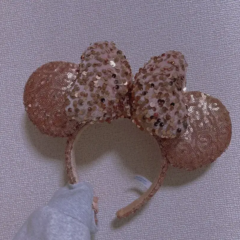 스팽글이 빛나는 로즈 골드 미니 마우스 귀 머리띠.