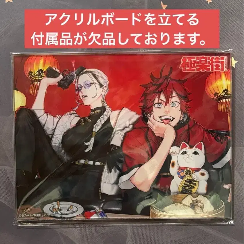 연말연시 슈에이샤 만화 축제 한정판 굿즈상 [오리지널 아크릴 보드 (극락 거리)] 해당 상품은 당첨된 굿즈로 귀중한 것입니다. 아크릴 보드 자체는 미개봉이지만 보드를 세우는 부속품이 결품되어 있어 이 가격입니다. 양해 부탁드립니다.