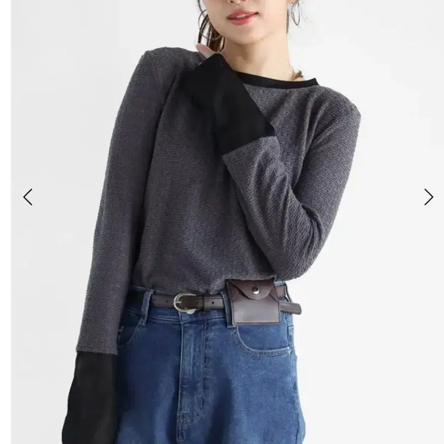 시어 원단을 도킹한 셔링 상의.