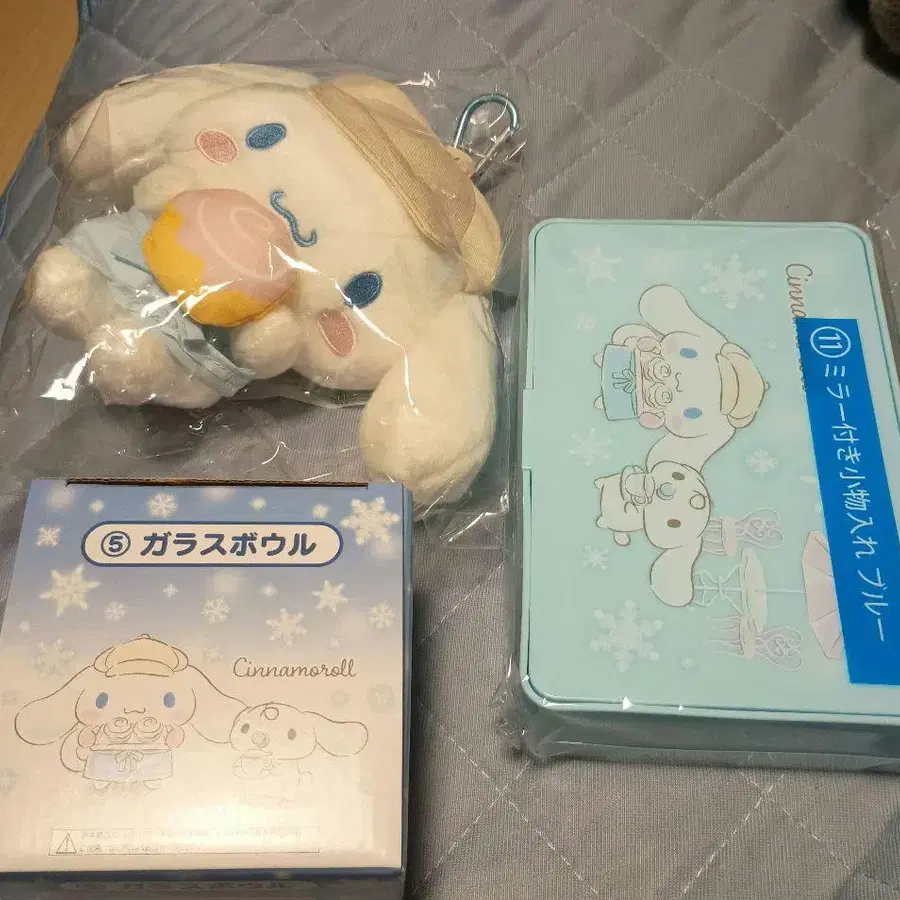 산리오 복권 시나모롤 봉제 인형, 유리 보울, 거울 포함 소품함 세트.