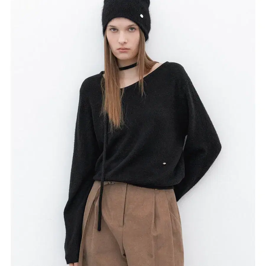 MUVEIL 리스 블랙 니트 스웨터 긴팔