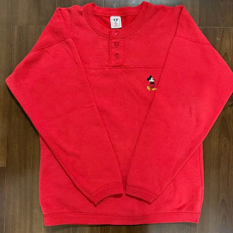 구제 의류 매장에서 구매했습니다. 속기모의 빨간색 헨리넥 맨투맨입니다. 왼쪽 가슴에 미키 자수가 놓여 있습니다. 밑단과 소매 끝은 리브 사양입니다. 사용감은 있지만, 큰 보풀 등은 보이지 않고 구멍이나 찢김도 없어 상태는 비교적 좋다고 생각합니다. L 사이즈이지만 약간 빅 사이즈로 나왔으며, 제가 162cm인데 밑단은 엉덩이를 살짝 덮는 정도입니다. 소매도 길어서 살짝 모이는 정도입니다. 반품은 불가하오니, 사진 확인 부탁드립니다. 궁금한 점이 있으시면 댓글 주시면 감사하겠습니다. 사이즈 - L 컬러 - 레드 계열 얼룩, 찢김, 냄새 등 - 없음