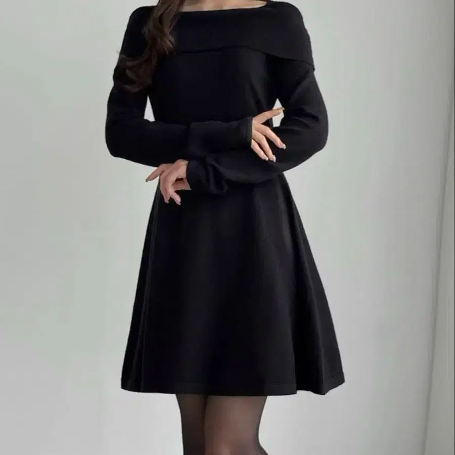 오프숄더풍 스퀘어넥 미니 니트 원피스
