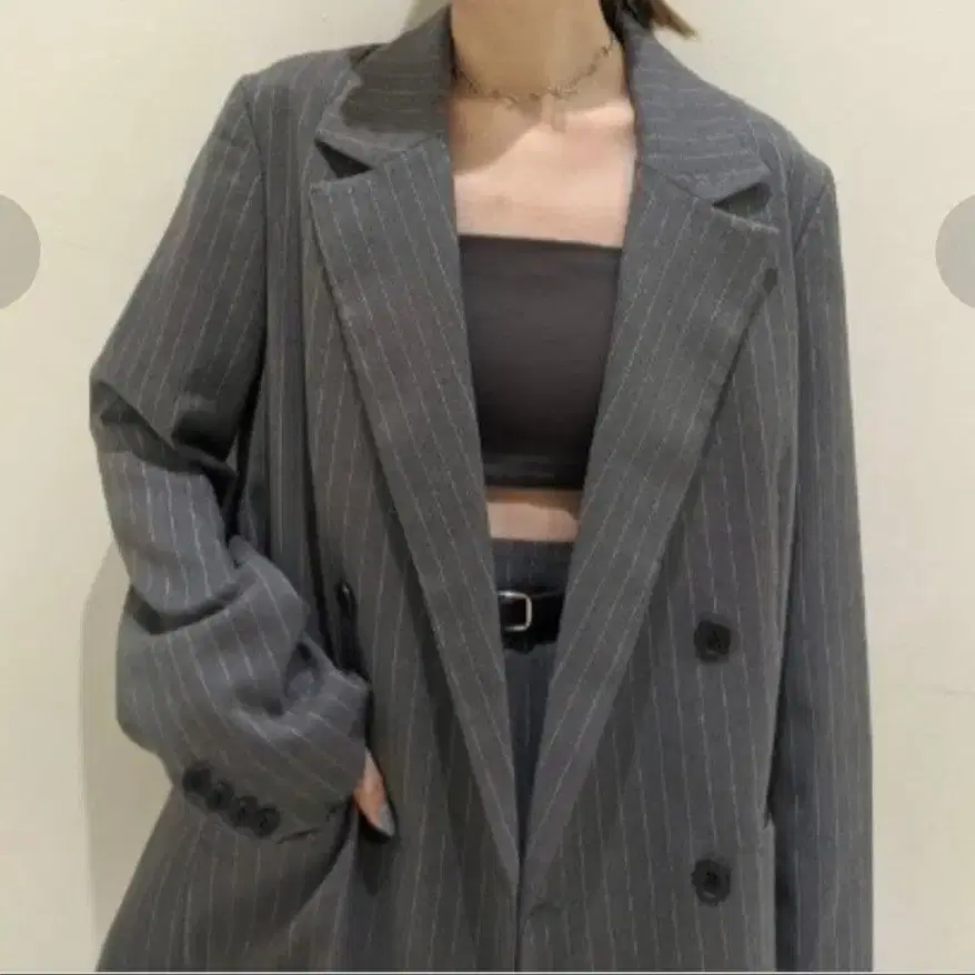 네이비 더블 브레스트 자켓 슬립 드레스 셋업