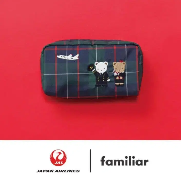 미개봉 새상품 familiar JAL 탑승자 한정판 체크 무늬 파우치
