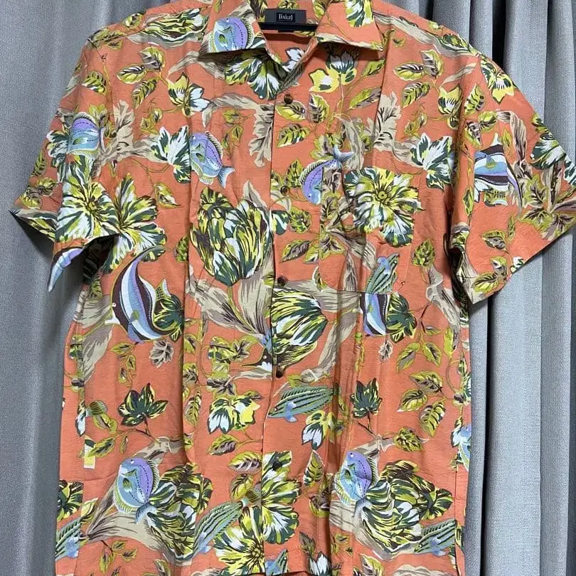 오렌지 꽃무늬 물고기 패턴 하와이안 셔츠 반팔 ixi:z 일본제