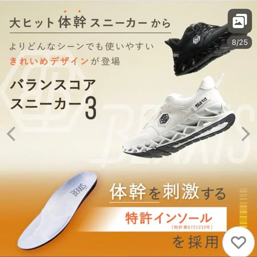 25년 8월에 예약 구매했지만 결국 시착만 하고 사용하지 않은 채 신발장에 보관만 했습니다. BEAXIS 밸런스 코어 스니커즈 3 다이어트, 몸통 강화에. 색상은 화이트 사이즈는 25.5-26.0
