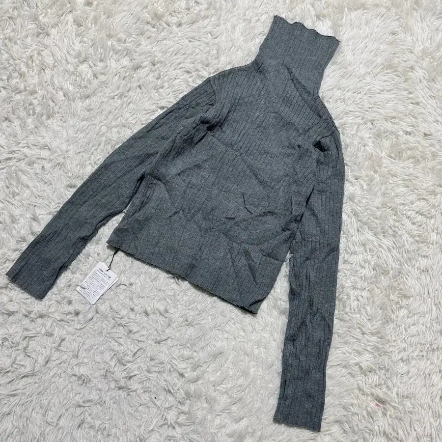 리브 편직 그레이 터틀넥 긴팔 스웨터