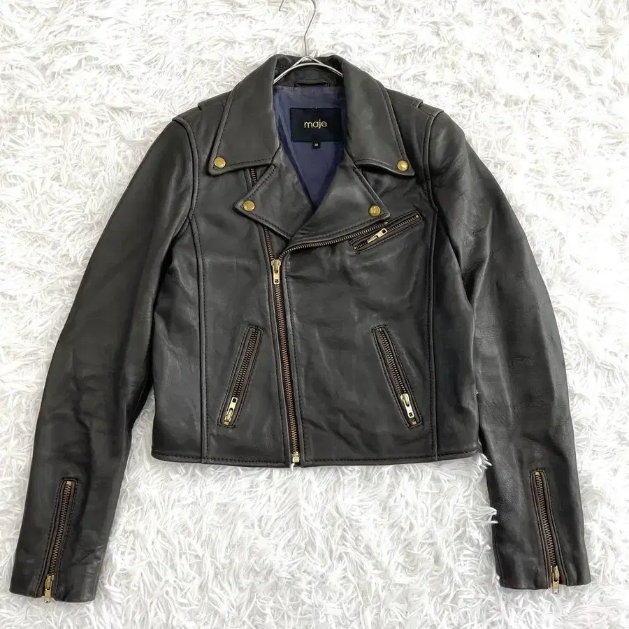 마쥬 maje 라이더 자켓 더블 골드 버튼 천연 가죽 M 가죽